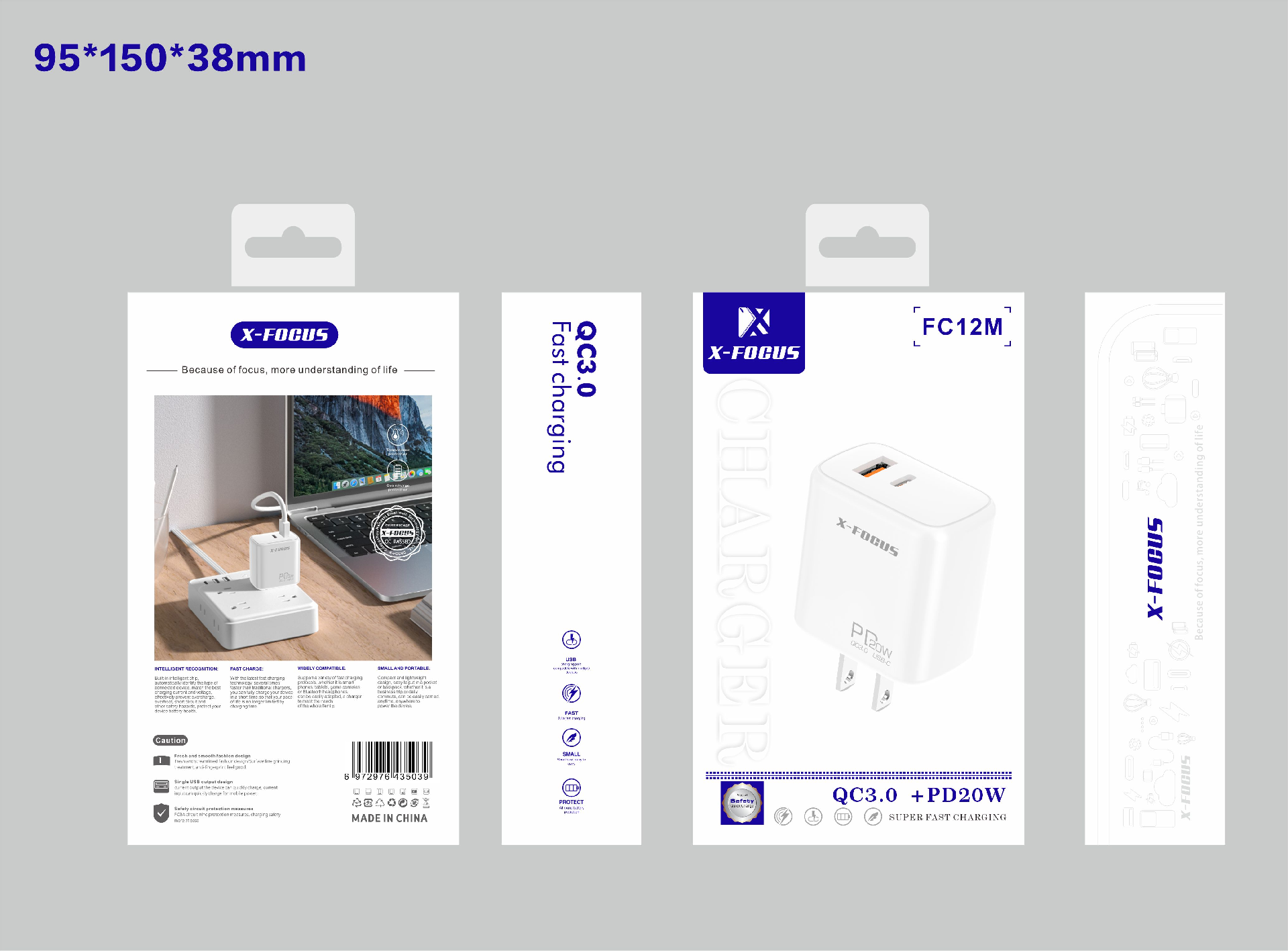 4. Output:3.6V-6.5V/3A 6.6V-9V/2A 9.1V-12V/1.5A 20W QC3.0